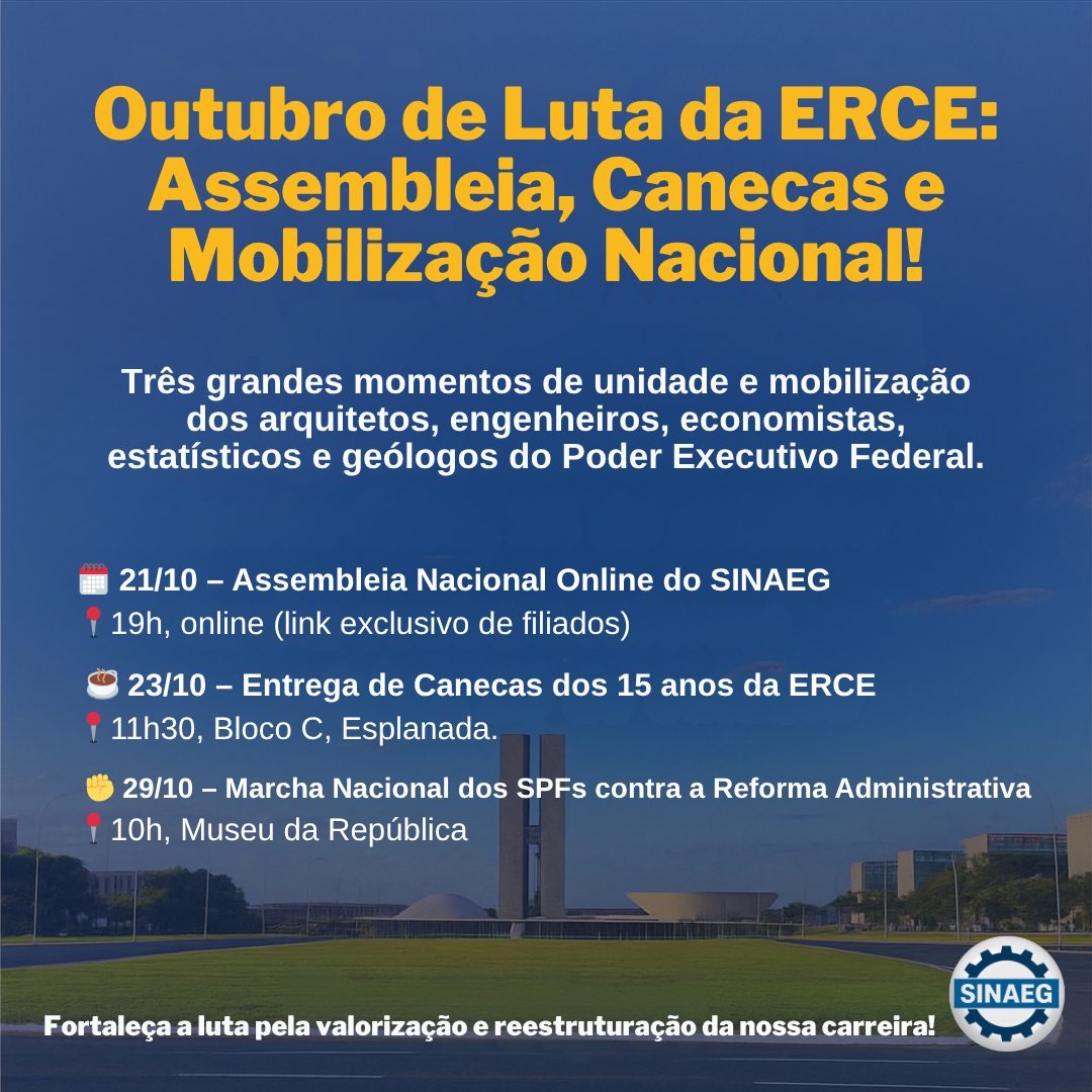 O SINAEG realizou na noite de 24/02 sua Assembleia Geral Extraordinária, com participação de filiados de todo o Brasil por meio online, para deliberar sobre a Campanha Salarial 2026, o plano de carreira da ERCE, a prestação de contas, a fundação da associação-espelho e a campanha de filiação. Na pauta central, foi aprovada por unanimidade… Assembleia do SINAEG (24/02) aprova Campanha 2026 e prioriza carreira plena da ERCE