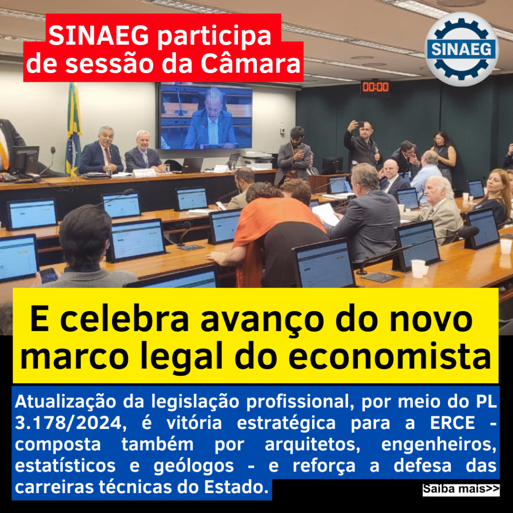 O SINAEG participou em 03/12 da sessão da Comissão de Trabalho da Câmara dos Deputados que aprovou, por unanimidade, o substitutivo ao PL 3.178/2024, que atualiza a regulamentação da profissão de economista. O Sindicato apoia esse um passo importante para fortalecer a segurança jurídica e o reconhecimento técnico dos que atuam em políticas públicas e investimentos governamentais.