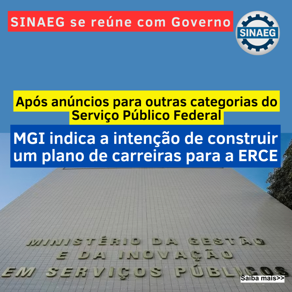 O SINAEG participou em 2 de dezembro de nova reunião com altos gestores do Ministério da Gestão (MGI) para avançar na reestruturação da ERCE e na proposta de transversalidade, em um avanço no reconhecimento da importância estratégica dos cargos previstos na Lei 12.277/2010.